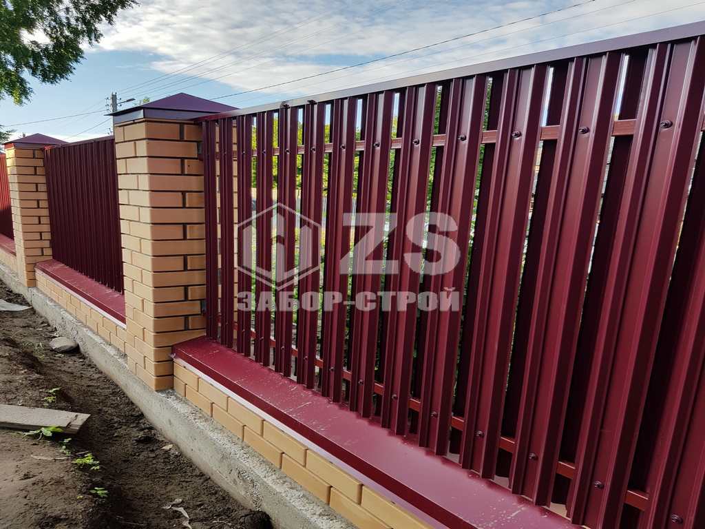- Забор на ленточном фундаменте из евроштакетника 40 метров