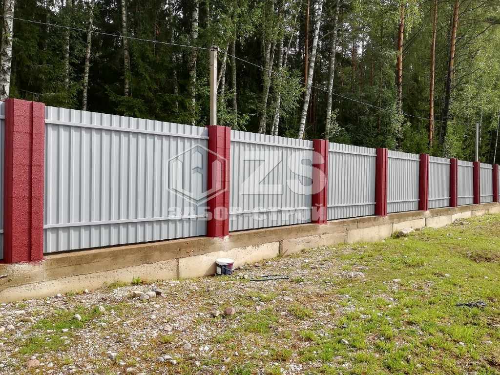 - Забор на ленточном фундаменте из профнастила 10 соток