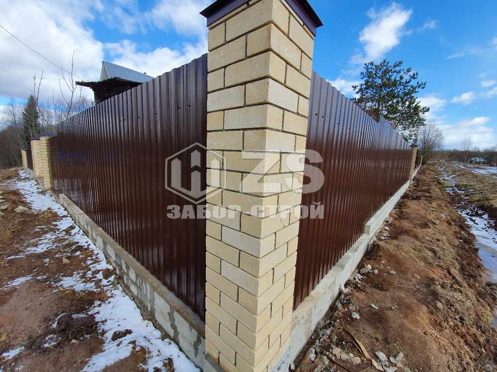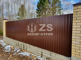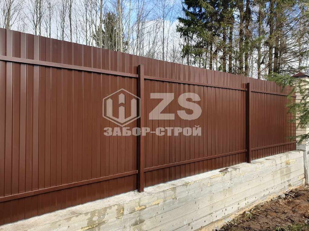- Забор на ленточном фундаменте из профнастила 40 метров