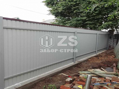 - Забор на ленточном фундаменте из профнастила 45 метров