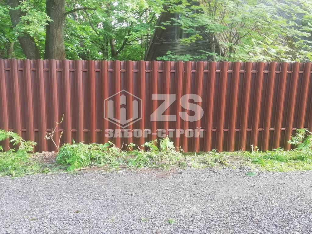 - Забор на столбах с утрамбовкой щебня из евроштакетника 45 метров