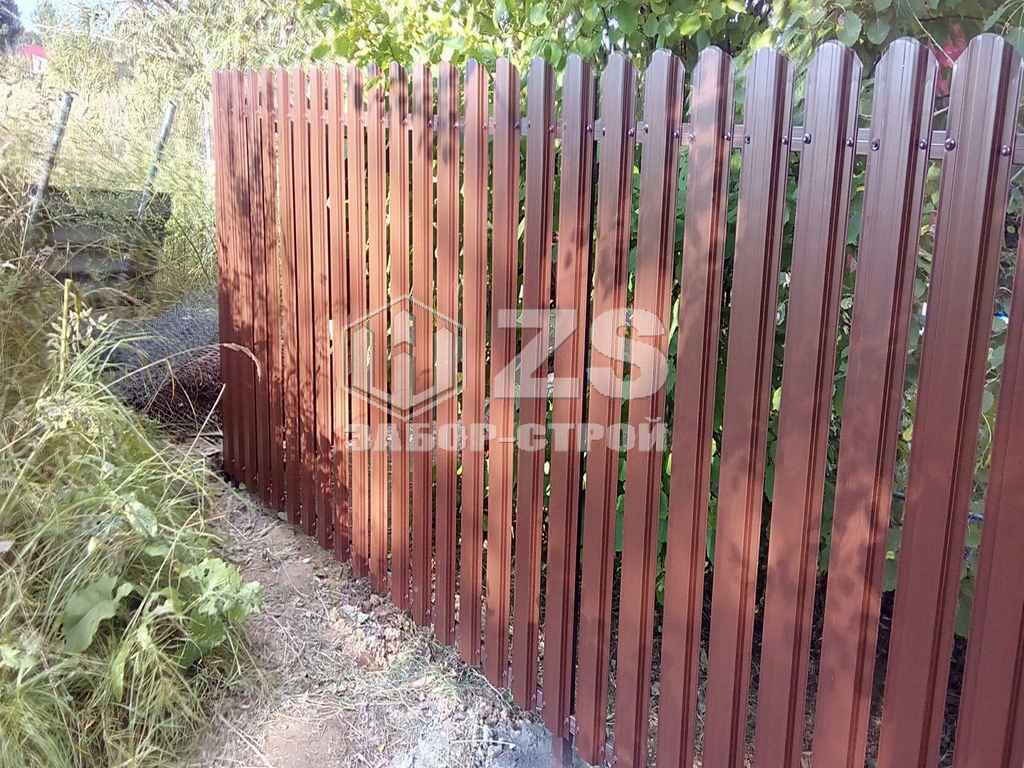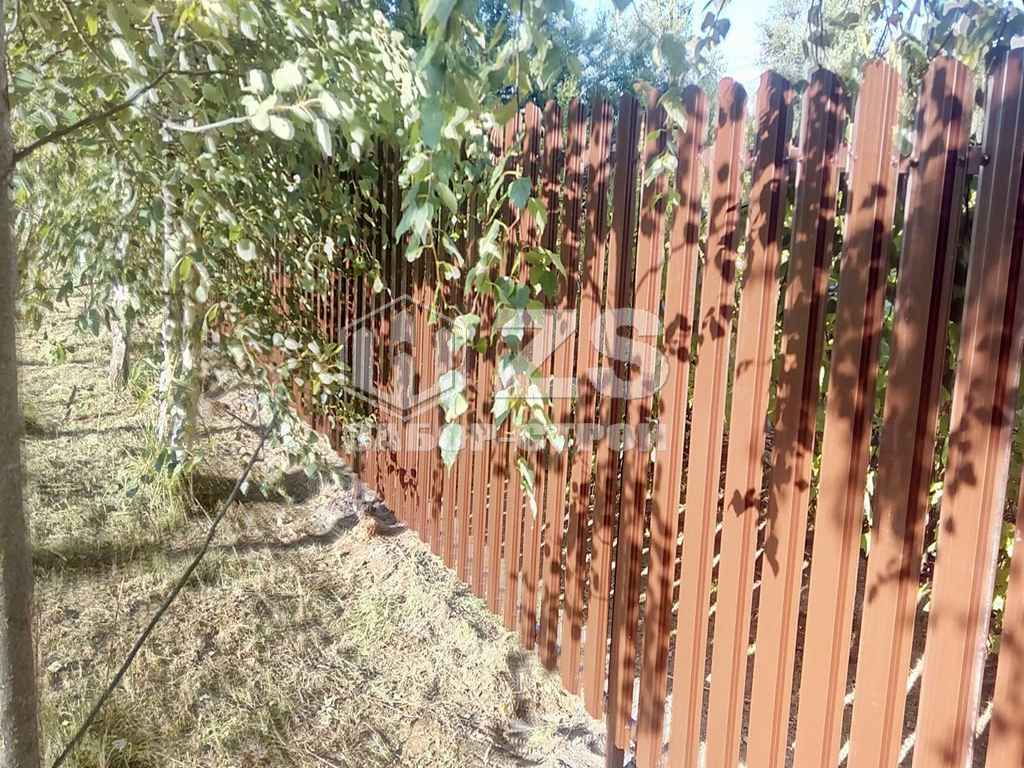 - Забор на столбах с утрамбовкой щебня из евроштакетника 6 соток