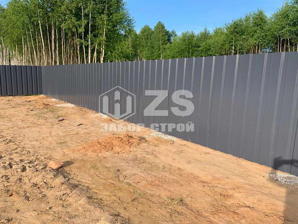 - Забор на столбах с утрамбовкой щебня из профнастила 42 метра