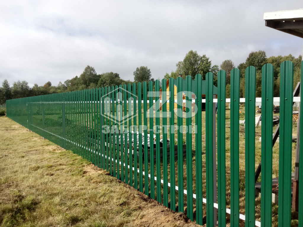 - Забор на забивных столбах из евроштакетника 6 соток