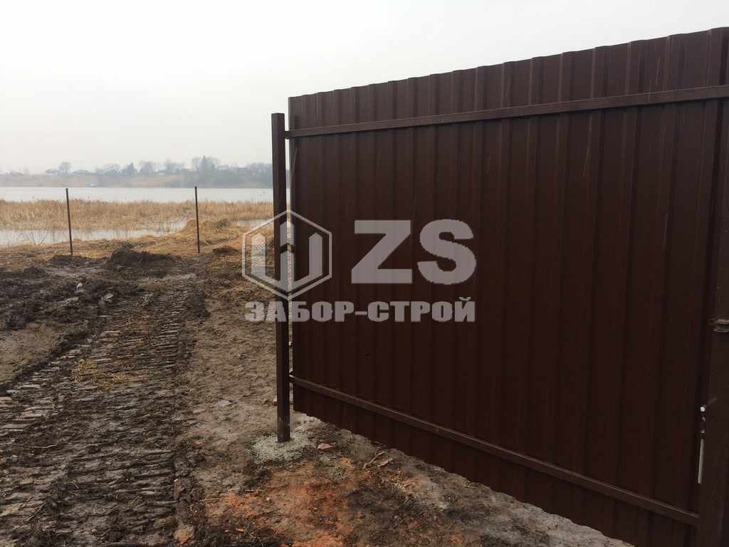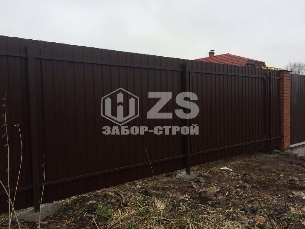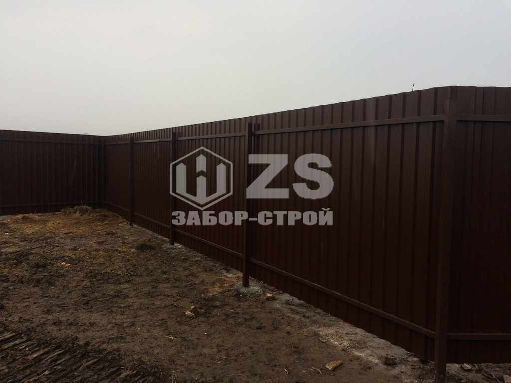 - Забор с бетонированием столбов из профнастила 8 соток