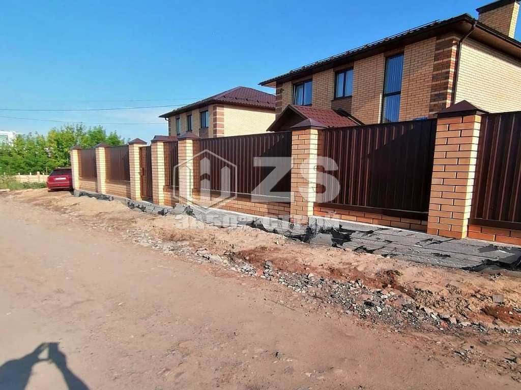 - Забор с кирпичными столбами